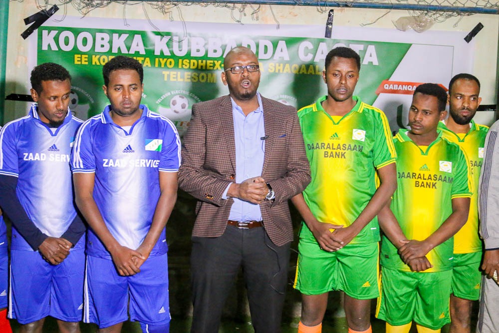 Koobkan oo ay qabanqaabadiisa lahaayeen Xarunta arrimaha bulshada ee Ummah Community Center ayaa xalay lagu daahfuray garoonka Power League waxana madashaas ka hadlay Maxamed Cabdi Giirre oo matalayay Shirkadda Telesom, waxana uu Mr. Giire sheegay in ujeeddada loo qabtay koobkan ay tahay in la dhiiri-geliyo Sports-ka, sidoo kalana ay shaqaale waynaha Shirkaddu isku bartaan, dhanka kalana waxa uu caddeeyay Mr. Giirre in koobkan aanu noqon doonin kii ugu danbeeyey ee Shirkaddu ay shaqaalaha u qabato, balse ay joogtayn doonaan, xooggana ay saari doonaan sidii caafimaadka shaqaalaha loo ilaalin lahaa iyagoo ciyaarahan iyo kuwa la mid ka ahba xoojinaya.
